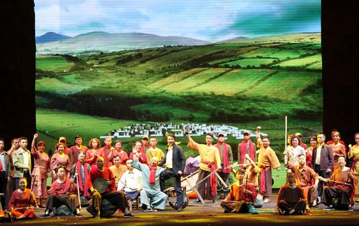 “罗罗面面,油馍串串。猪肉扇扇,蜂蜜罐罐。我娃是个福蛋蛋……”这段源自陕西民间歌谣的唱词,在《家园》里多次出现。每当这段唱词响起,仿佛一下子就把观众带到了壮丽秀美的秦岭汉水之中。5月11日,第十一届中国艺术节开幕演出剧目,大型秦腔现代戏《家园》在富平文化中心剧场演出,1000余人观看了表演。