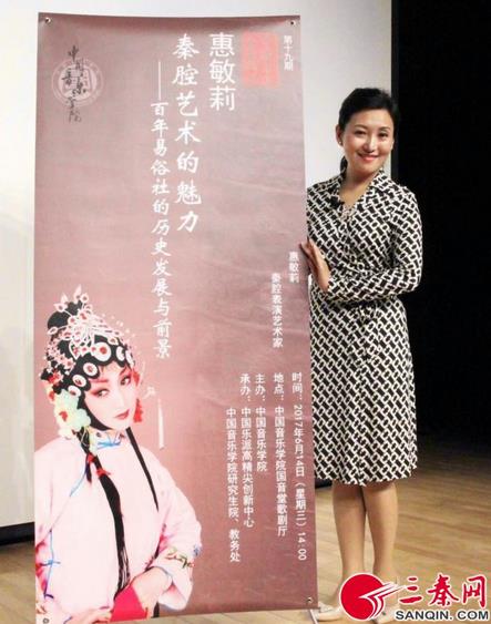 三秦都市报-三秦网讯(记者 夏明勤)6月14日,研修院中青三期校友,西安秦腔剧院易俗社党支部书记兼社长惠敏莉在中国音乐学院国音堂歌剧厅举行“中国乐派名家讲坛”讲座,讲授秦腔的知识和易俗社的发展历程,分享了她多年来从艺的心路历程与艺术感悟。据悉,这次讲座是首次将秦腔这一古老剧种传播在我国最高音乐学府。