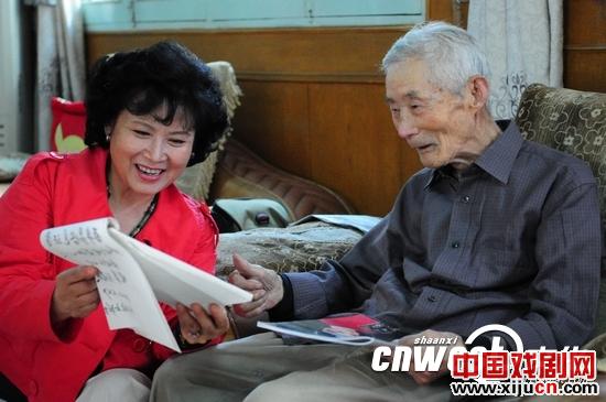 陈爱美在三原采访九旬戏迷刘恩沄。