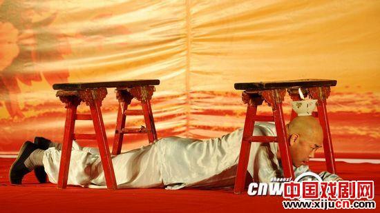 陕西省戏曲研究院青年团演员张波在表演小品《滚灯碗》