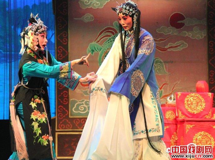 《修本》一幕,赵艳容为救匡扶,忍住心内对父亲的憎恨,祈求父亲为夫修本,向秦二世求情。父亲答应,伏案修本,对赵艳容来说,这是第一喜。秦二世摆放赵家,赵高呈上修本,胡亥应允。对赵艳容来说,这是第二喜。但情势急转。胡亥再次拜访赵家,恰巧撞见赵艳容。胡亥不顾艳容尚在孝中,淫念大作,要收艳容为嫔妃,许诺赵高赐封他为当朝太师。艳容对胡亥的荒淫无道十分痛恨,这是第一悲。赵高贪图权位,竟无耻的答应了。赵高无耻的欢笑,是赵艳容的第二悲。为逃避入宫,哑巴丫鬟与艳容商议,决定装疯。舞台上,艳容一面对着父亲装疯,回头又和丫鬟商议。“疯”和“不疯”两种状态、神情、表演、唱腔快速转换,令人眼花缭乱。