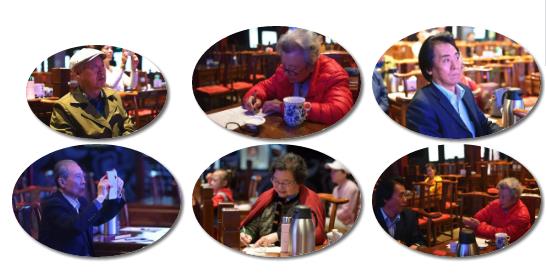 几位老艺术家坐在观众席或是凝神注视台上,或是伏案记录、或是低声商讨、或是用手机记录下孩子们精彩的瞬间。