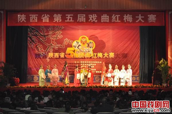 秋风送爽,金桂飘香。由陕西省文学艺术界联合会、陕西省戏剧家协会、高陵县人民政府主办,陕西省戏剧家协会、高陵县文体广电局承办的“陕西省第五届戏曲红梅大赛”在进行了10场初赛、6场决赛之后,于2011年9月29日晚在高陵县电影院举行了颁奖晚会。戏曲红梅大赛是仅次于国内戏曲最高奖项“梅花奖”的顶级赛事,是陕西省辐射面广、代表性强的戏曲艺术赛事之一。对于繁荣陕西省戏剧艺术、丰富广大人民群众文化生活,必将起到积极地促进作用。本次大赛的报名工作于今年二月份启动,有30多个院团、近300名选手报名参加了本次大赛,参赛剧目有秦腔、眉户、碗碗腔、京剧、木偶、皮影等,涵盖了陕西省主要剧种和行当。9月5日,大赛在西安市易俗大剧院正式拉开帷幕,本次比赛,采用评委现场打分、计分员现场统计、主持人现场报分的方式,整个过程都有纪检员现场监督。这一做法杜绝了赛前找人、赛后扯皮的隐患,从而真正实现了比赛的公平、公开、公正。本次大赛的宗旨在于为了弘扬民族文化,推出戏曲人才,为陕西省戏曲演艺人员提供展示才华和学习交流的平台,检验和鉴定他们的专业技能水平,促进戏曲艺术整体水平的提高,并为第六届“中国戏曲红梅荟萃”活动推荐人选。这次大赛可以说是为大家奉上一场精彩绝伦的戏曲盛宴,让大家过足了戏瘾。决赛时整个剧场座无虚席,气氛相当火爆,参赛选手精彩的演出得到观众一阵又一阵热烈的掌声鼓励。通过本次大赛,不仅展示了陕西省中青年演员唱做念打、五功四法的综合水平和演奏员的精湛技巧,也为戏曲爱好者们提供了展示才华和学习交流的平台,有利于陕西戏曲艺术整体水平的提高。100多名参赛的专业演员和演奏员经过六场决赛紧张激烈的角逐之后,各种奖项终于尘埃落定。来自易俗社小剧场的优秀青年旦角演员李晓娟以秦腔《洛阳桥·挂画》中的耶律含嫣一角参赛,凭借她的优越天资和多年扎实的戏曲基本功,凭借她唱腔的甜美和和对剧情人物的理悟,凭借她精美绝伦的椅子功、手帕功一举获得第五届陕西戏曲红梅大赛一等奖,并且最终入围本次大赛颁奖晚会,再次给观众带来精彩的演出。这个奖项,既是对李晓娟十几年艺术旅程的肯定,又是鞭策她向更高的艺术层次前进的动力。