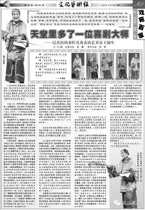 他是秦腔舞台上的常青树、戏迷眼中的艺术家、晚辈心中的好榜样;他主演的秦腔折子戏《看女》红遍了广袤的大西北,堪称一绝;他的徒弟遍及陕西、甘肃、北京等地,可谓桃李满天下。他,就是有着“秦腔卓别林”“丑角大师”“西北名丑”等美誉的杰出秦腔丑角表演艺术家—王辅生。