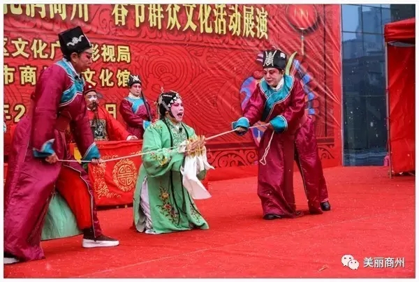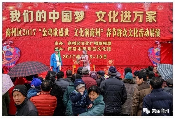 秦岭商州2017“金鸡歌盛世,文化润商州”春节群众文化活动展演在大都汇广场演出,吸引了大量观众,现场热闹非凡。由西街社区民间剧团演出的秦腔《卷席筒》让市民百姓大开眼界,叫好声不断,高涨的热情再一次提升了新春的年味。
