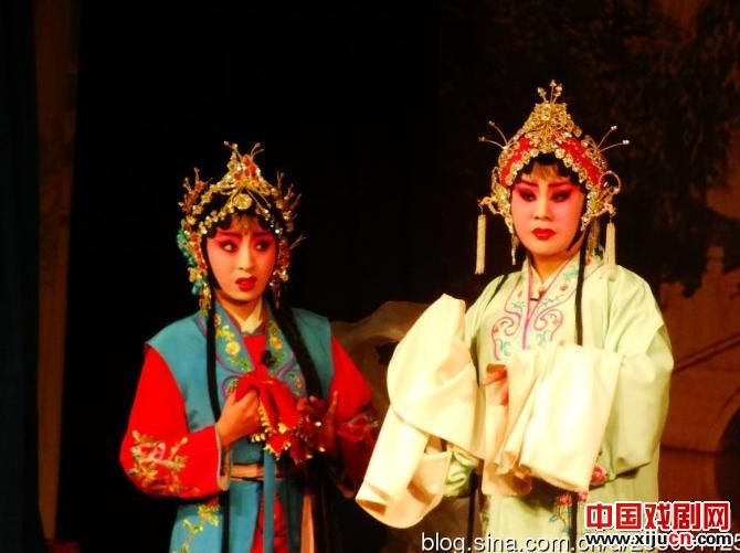 武山县秦剧团旦角演员夏露霞在《火焰驹》中饰演的黄桂英、张灵霞饰演丫鬟小芸香