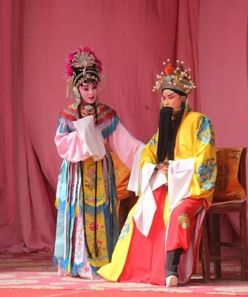 《大拜寿》剧目以公主告状一段最为精彩。背景虽系皇家,公主却是撒娇情态,父皇母后亦是护犊情深。父母女儿,言语之间你来我往,更显情真意切。
