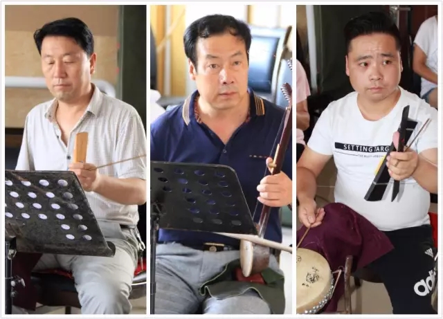 (左)二级鼓师周元灵(中)二级琴师鱼军民(右)青年鼓师段恒飞