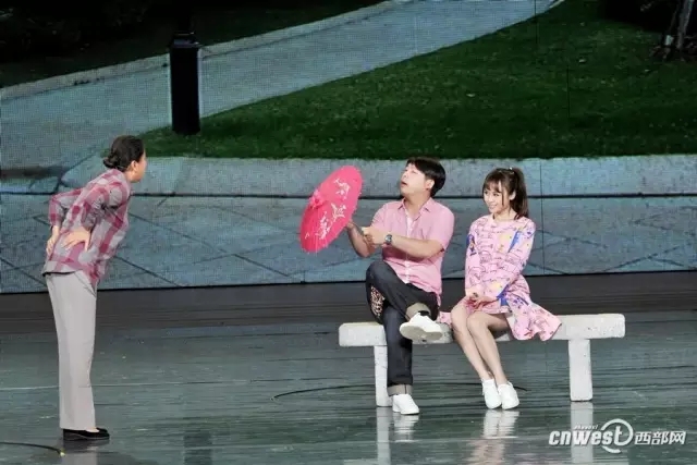 关中曲子俗称曲子,现为国家级非物质文化遗产代表性项目,是陕西关中地区极具代表性的唱曲类曲艺形式之一。关中曲子《沙海情话》采用隔空对话的浪漫主义手法,以普通农民郭老汉对去世老伴的思念之情为主线,说唱追述了郭老汉与老伴沙海相伴30年,共同植树造林5万亩,让家乡万亩沙漠变绿洲的感人故事。关中曲子《沙海情话》在吸收借鉴传统曲牌音乐的基础上,从曲调、内容、表演形式等方面进行了全新尝试和发展。演出形式为男女二人站唱、和声伴唱及乐队伴奏。男演员手持四页瓦、女演员手持竹筷、瓷碟为伴奏打击乐器,充分展示陕西青年业余曲艺爱好者团队充满活力、清新阳光的风采。