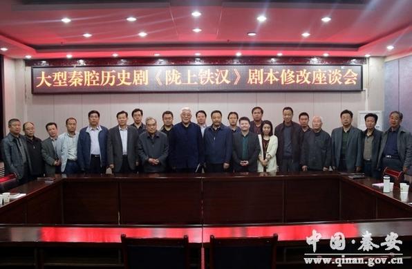 4月22日,秦安县召开大型秦腔历史剧《陇上铁汉》剧本修改工作座谈会。县委常委、宣传部长徐东明,县人大副主任张来禄,县政协副主席马振寰、原县人大副主任魏千乙,陕西戏曲研究院导演王化武,编剧李金亮、将演,县内文化界人士、相关部门负责人参加了座谈会。