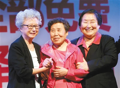 老艺术家全巧民(左)、李夕岚和李爱琴(右)亮相招生启动仪式现场