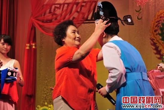 李爱琴老师饰演的周仁,深入人心,青春版的杨升娟水准如何?能否传承起“周仁”的衣钵?拜师仪式上,李爱琴老师的目光是赞许和肯定的,感到事业后继有人,李老师眼中不时泛起泪花。李老师送给爱徒的是伴随自己上千场的周仁头冠以及全身的袍服行头,亲自给孩子穿戴上身,李爱琴老师流露出满的笑容。