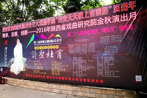 9月16日晚,“传承,发展,创新——2016年陕西省吸取研究员金秋演出月”系列活动在我院局长拉开帷幕,作为首场演出的新编秦腔历史剧《诗圣杜甫》以其精彩的舞台呈现赢得了观众热烈的掌声。本次系列活动自9月6日开始至10月7日结束,主要包括以下三项内容:第三届丝绸之路国际艺术节《诗圣杜甫》展演,国家艺术基金2015年度资助剧目《李十三》、《诗圣杜甫》汇报演出,优秀青年演员人才托举工程。