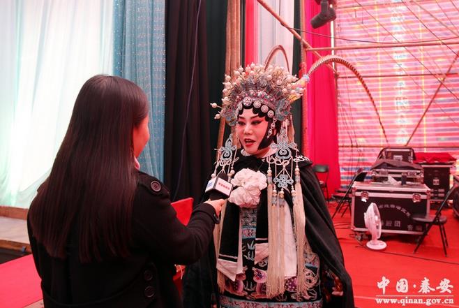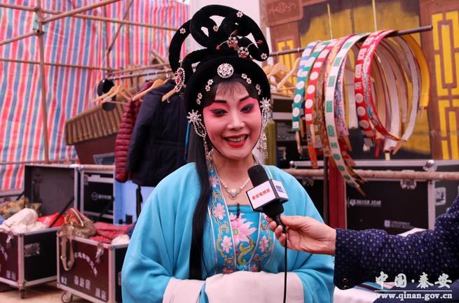 陕西戏曲研究院秦腔团优秀旦角演员茹曼表演细腻纯熟,台风大气自然,声腔清亮圆润,受了广大戏迷观众的好评。她说:”这次我们来秦安演出,现场感受到了秦安人民的热情和戏迷对秦腔的钟爱,尤其前两天,天气特别冷的时候,我们在台上表演《周仁回府》,台上观众一动不动地坐几个小时,让我们很受感动。所以说我们能来秦安演出,给秦安人民带来文化上的享受,但是秦安戏迷带给我们的是精神上的莫大鼓励,这是一种互动互爱,是一种秦腔情结,希望我们再次来秦安演出,为大家带来更好的剧目。