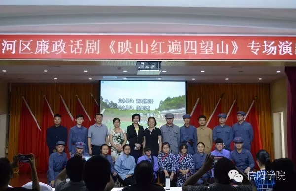 日前,由我校文学院师生排演的廉政话剧《映山红遍四望山》在浉河区区委会议中心上演。我校党委书记张莉,浉河区委常委、纪委书记徐晓等领导和200余名观众一同观看了演出。