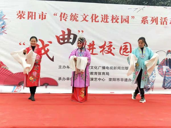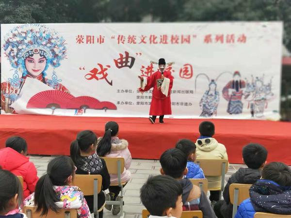 大河网讯 11月27日下午,由中共荥阳市委宣传部、荥阳市文明办、荥阳市文广新局和荥阳市教体局联合举办的“戏曲进校园”活动来到荥阳三小,为全校师生带来一场精彩绝伦的戏曲盛宴。