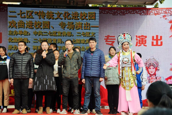 大河网讯 为培养学生对优秀传统文化的兴趣,增强学生戏曲艺术素养和审美素养,11月20日上午,郑州市二七区马寨一中举行了"戏曲进校园"活动,河南省小金凤豫剧团的艺术家们到校为全体师生带来了一场戏曲文化盛宴。