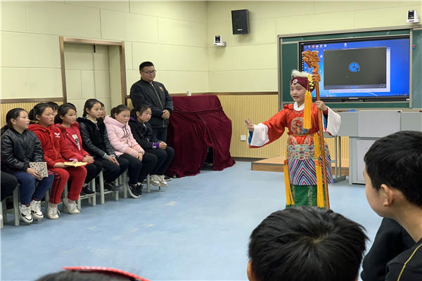 活动中,音乐教师李宁为二七区马寨的闫家咀小学和王庄小学的师生们带来了独特的戏曲体验课。李老师丰富的戏曲知识、诙谐的语言、精彩的表演,不时获得当地老师和孩子们热烈的掌声;铭功路小学的四位小演员身着精美的服饰,配以入情入境的表演,也让两所学校的同学们更加直观地了解到了不同戏曲剧种、行当的特点;孩子们也被深深吸引其中,积极参与互动,模仿唱腔、念白、表演,戏曲知识竞猜,课堂气氛十分活跃。