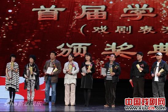 首届“学院奖(话剧表演)”奖项设置简洁,除集中表彰进京演出团体外,仅设置了“最佳主角”和“最佳配角”两个奖项类别。开奖嘉宾冯巩幽默地说:“电影有影帝,咱们这个叫‘学帝’?‘戏帝’?‘表弟”(表帝)!女的就是‘表妹’了。”14日当晚,“最佳主角”和“最佳配角”这两个奖项各有多人获奖,获奖者均与来自专业戏剧院团。产后重回《简爱》剧组的袁泉,也凭借“简爱”一角获得“最佳主角”,观众们比较熟悉的吕凉也凭借话剧《1977》中的“老迟”一角摘得这一奖项。同时,马炼、杨树田、艾平、张页川、张黎明、薛白、衣国锋、张艳秋(微博)等均获得“最佳主角”。任山、马彦伟、罗久江、罗军、樊艳芳、崔冰、李建鹏等人获“最佳配角”。学院奖奖杯金光闪闪,盘绕着立体雕刻的长青藤,象征艺术长青向上。