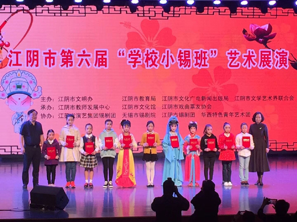 中国江苏网10月23日无锡讯(吴亚华) 为了更好地振兴锡剧艺术,弘扬地方传统文化,10月19日至21日,由江阴市文明办、市教育局、市文广新局、市文联联合主办的江阴市第六届“学校小锡班”艺术展演在江阴市文化馆举行,来自全市20所学校的1000多名“小锡班”学员进行了160个节目的演出,这真是一场锡剧盛宴。