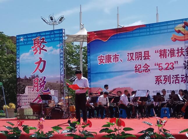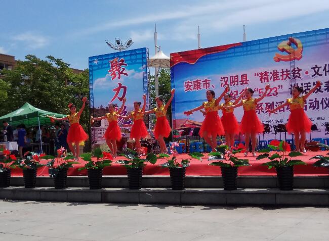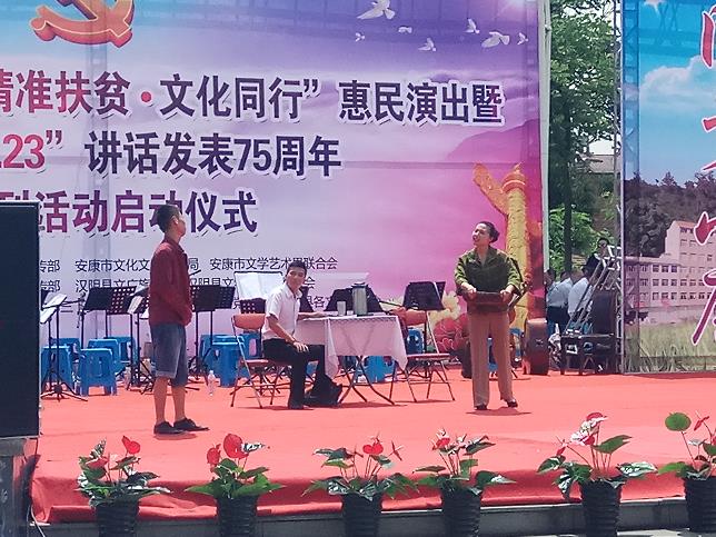 本报讯(通讯员欧定扬)为唱响精准扶贫、精准脱贫攻坚致富奔小康的正气歌,纪念毛主席1942年5月23日在延安文艺座谈会上的讲话发表75周年,汇聚文艺发展的正能量,激发广大文化艺术工作者的创作热情和为人民服务的工作干劲,5月23日上午,由安康市委宣传部、安康市文化文物广电局、安康市文学艺术界联合会主办,汉阴县委宣传部、汉阴县文广旅游局、汉阴县文学艺术界联合会承办,涧池镇党委政府、市县各文艺家协会协办的安康市“精准扶贫·文化同行”惠民演出暨纪念“5·2.3”讲话发表75周年系列活动启动仪式(汉阴站)在汉阴县涧池镇文化广场举行。涧池集镇及周边广大干部群众兴致勃勃云集演出现场观看了演出。