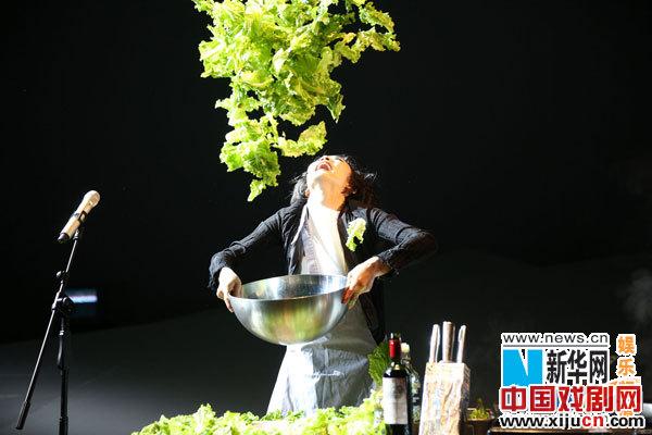 按照导演的创作思路,简约的舞台被一分为二:一张铺着白色床单的地铺,其余陈设俨然是一个热火朝天的西式厨房的现场。干邑、伏特加、橄榄油、牛排、牛油果、生菜、番茄……所有食材一应俱全,而舞台上的“陌生女人”在每一次遭遇爱情的热烈与被遗忘的失落之后,都要到“厨房”中进行淋漓尽致的宣泄,她一边倾诉着对爱情的绝望,一边现场拌沙拉、饮烈酒、煎炸牛排,伴随着剧情的层层深入,现场烹制的美食香味也弥漫在剧场中间。甚至曾有观众在观剧之后评论:“非常幸运能坐前面,清楚的看见她脸部抽动的肌肉,微张的鼻孔,闻到她切的黄瓜,柠檬,烧焦的牛排的味道,所有感官都调动起来。”
