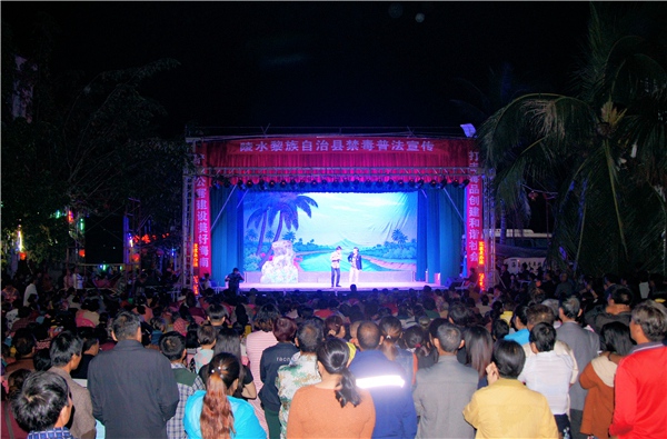 人民网讯 为贯彻落实禁毒三年大会战行动,进一步加大禁毒法制宣传教育力度,增强广大人民群众的禁毒意识、推广禁毒法律知识。12月5日晚,由省司法厅、省普治办主办的大型现代禁毒普法琼剧《回归》巡演活动走进陵水县新村镇旅游码头,吸引了当地300多名群众到场观看。