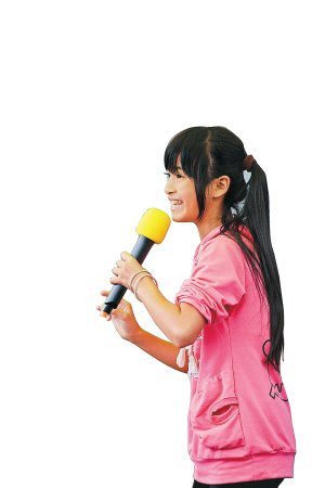 定安小戏迷很多。图为岭口小学六年级的杨昌娜在唱琼剧。