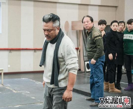 12月29日,话剧《萨勒姆的女巫》主演王卫国(中)等在发布会上表演片段。