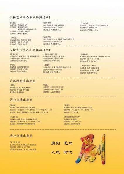 由中国国家话剧院、北京市西城区人民政府联合主办的“第二届中国原创话剧邀请展”自3月18日至7月3日举办,将汇集中国国家话剧院和全国各地国有院团、民营院团、社区戏剧团体的26部大剧场剧目和24部小剧场剧目,分别在国家话剧院剧场、天桥艺术中心、首都剧场、国话先锋剧场等地演出190余场,集中展示全国话剧创作整体实力、精神风貌和发展态势,力争成为中国原创话剧的助推发动机和精品博览会。本届邀请展列入国家艺术基金资助项目。