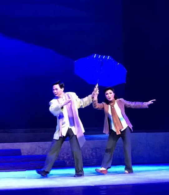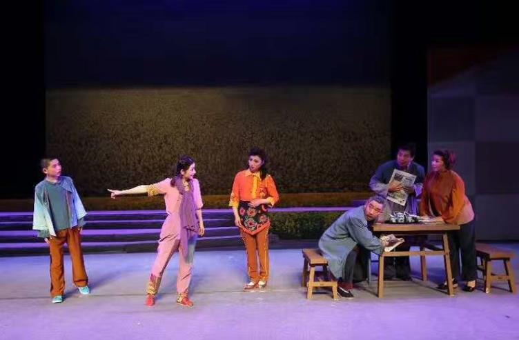舞美创意,多元显意境。当大幕拉开时,舞台上呈现的是非常写实的桌椅,背景则是金灿灿的油菜花画布,仿佛回到了上世纪八十年代的戏曲舞台。而随着剧情的深入,灯光调度、道具转换,小提琴伴奏,加之略显夸张而时尚的服装,都在告诉您,该戏“回归戏曲本体,但绝非死守,最大化地调用现代美学的视觉和听觉元素,呈现真正的现代舞台空间”。不仅如此,导演还在一些场次中,加入了舞蹈元素,前景是主人公的表演,背景则是舞蹈演员的配舞——男主角内心空间的开觉,一下子让观众走入人物人物内心世界,极具美感和震撼!