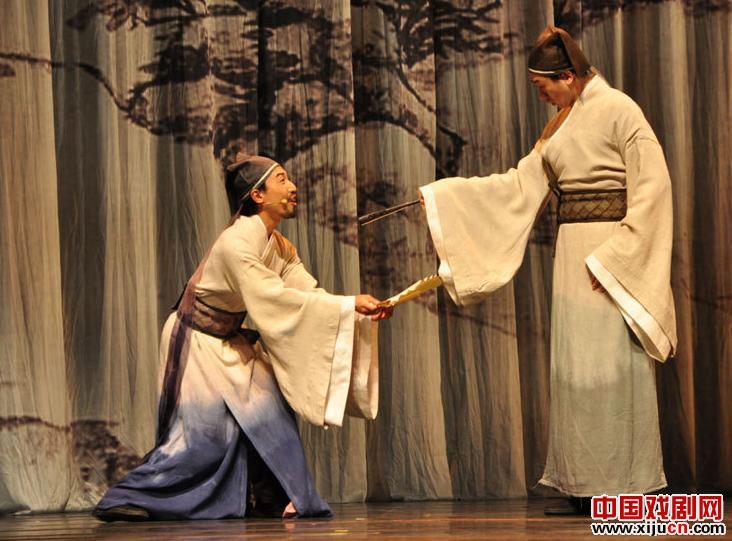 话剧作为一种舞台艺术,如何在有限的环境中处理时间和空间的问题是一部戏成败的关键,尤其是对于《西厢记外传》这种带有实验先锋性、强调错位感的剧目来说,更是一大考验。所以,国际金牌舞美设计刘杏林为该剧设计了一扇从顶到底、360度旋转的巨型屏风,再绘以中国传统水墨画的“山水轴”,这个综合了东西方神韵的设计恰与奥运会开幕式水墨画轴的创意有异曲同工之妙。在《西厢记外传》的演出中,这幕“山水轴”随着它对舞台空间垂直或者水平的旋转切割,有限的舞台瞬时具有了无限延展的可能,巧妙地为故事营造出在两个甚至多个时空平行发展的“蒙太奇”效果。在演出中,屏风底部的白纱漫舞飘散,能让观众产生恍入仙境之感。