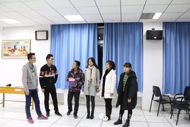 初期需要选定合适切题的剧本和热情的演员。练习期间既会发生剧本有漏洞需要修改和演员没有办法深入的去演绎剧本等等许多问题。因此,为了能够在比赛时获得优秀的成绩,团队领导者们反复思量,一起讨论。剧本内容简单,就去加台词。演员情感不到位就反复说明,反复示范,不厌其烦。虽然困难重重,可每遇到一个障碍,艺术与设计学院团队的成员们都能坐下来一起商谈,一起去寻找解决问题的方法,攻破了一个个障碍。