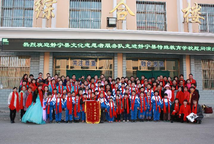 凡人善举,情暖静宁,点燃希望,放飞梦想。近日,在全县开展的学雷锋志愿服务集中月活动中,为了积极培育和践行社会主义核心价值观,大力弘扬“奉献、友爱、互助、进步”的志愿精神,推动全县志愿服务工作纵深发展,进一步营造创建全国文明城市浓厚氛围,静宁县文化志愿服务队按照县文明委的安排以“学雷锋送文化”为主题,开展了由中共静宁县委宣传部、县教育局主办,县文体广电局、县文联、县文明办、平凉市蓝天助学协办,县文化志愿者服务队、静宁县特殊教育学校、静宁县心手文化服务有限公司承办的走进静宁县特殊教育学校慰问演出活动。