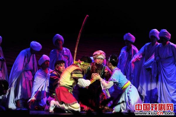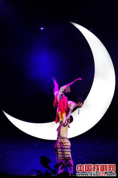 《月上贺兰》共分四幕,主要讲述的是在千百年前的古丝绸之路上,一支来自西域的商队历经艰险,在当地汉族及其他少数民族的帮助下,战胜各种困难,完成了穿越沙漠、东渡黄河的商旅使命。在这一过程中,来自西域的青年纳苏与当地姑娘海真相互爱慕,产生了真挚的爱情。也正是这种真爱,超越了民族、信仰、习俗的不同,使这一对恋人,在贺兰山下结为夫妇,繁衍生息。