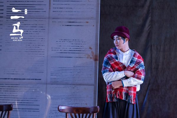 方旭用硕大的报纸布景作为分幕的间隔,将所有情节变成了台词。启用全男班的演员,某种程度上说,既是为了减少突兀,也是为了弥补剧情和人物的短板。出演温都太太的乾旦演员刘欣然,还在剧中与方旭本人饰演的老马表演了一段京剧。
