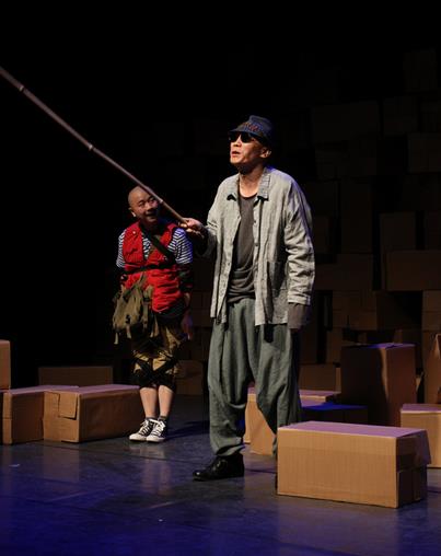 从《我这一辈子》开始,“形式”一直是方旭在改编老舍小说时思考的重大课题。他把《我这一辈子》改成独角戏,用一尊似人非人的人偶做道具;把《猫城记》改成当代小品,台上全是纸箱子。
