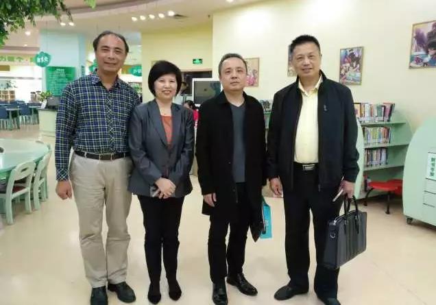 龚孝雄与南东街道总工会副主席黄宪祖、黄浦区图书馆副馆长潘敏等合影留念