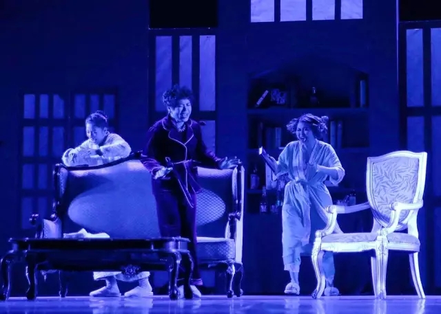 演出中,演员们娴熟而生动的台词,丰富而略显夸张的表情,再加上扑朔迷离而扣人心弦的故事情节,征服了台下的观众,也让他们真正感受到了话剧的魅力。整场演出高潮迭起,精彩不断。剧中“康拉德•查尔斯”扮演者以浑厚的嗓音、俊朗的外表、彬彬有礼的举止将这位英国绅士展现得淋漓尽致。而“伊芙琳•麦肯齐娅”的饰演者则以妩媚的身材、泼辣的个性将这位时尚女郎演绎得游刃有余。