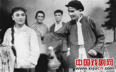 韩文华(右)在现代琼剧《朝阳沟》中饰演党支部书记。 陈耿 翻拍