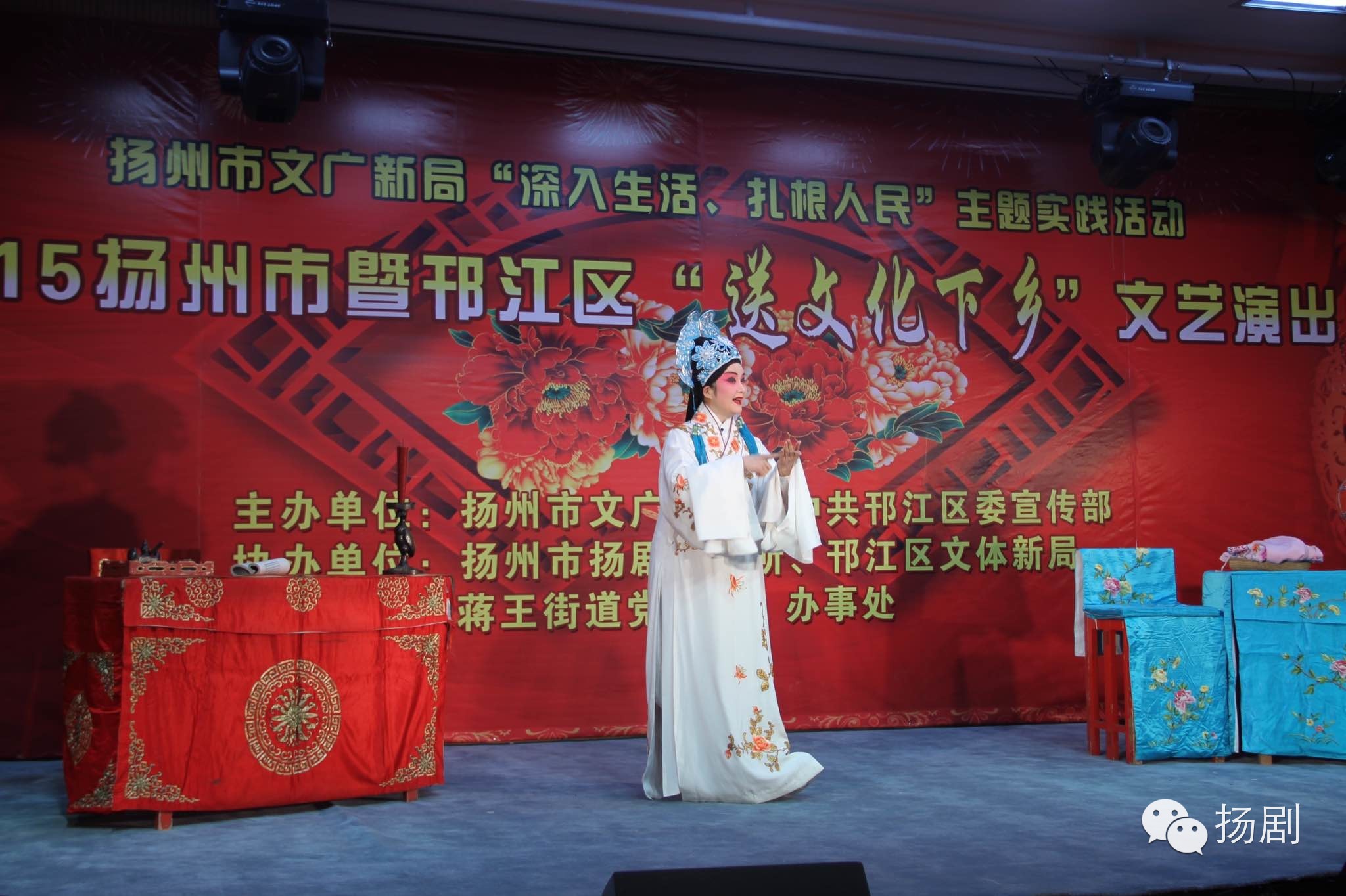 本次送戏下乡是扬州市文广新局“深入生活、扎根人民”文化惠民演出活动的重要一站,为保证高质量的演出效果,扬州市扬剧研究所四大花旦齐登场,为父老乡亲带来了《节义锁.书房会》葛瑞莲、孙爱民,;《秦香莲.闯宫》王瑞如、周斌、张卓南、谭颜馨、曹玲;《罗帕记.回娘家》赵紫君、吴顺林;组织优秀中青年演员配演,配备了多达十余人的乐队,还包括舞美、音响、服装、化妆等人员共计三十余名。