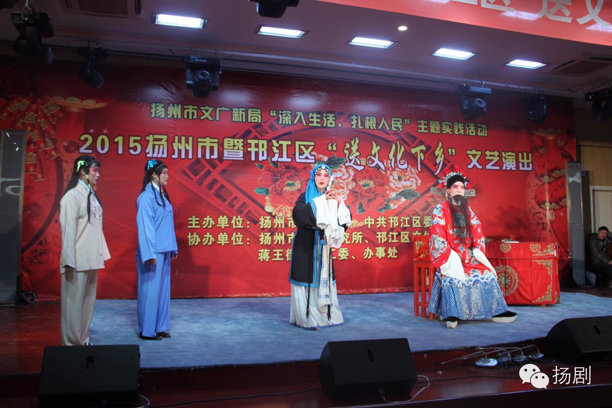 2月11日上午,由扬州市文化广电新闻出版局、中共邗江区委宣传部主办,扬州市扬剧研究所、邗江区文体局承办的2015扬州市暨邗江区“送文化下乡”来到蒋王镇小学多功能厅,为该镇群众送上精彩的扬剧折子戏。