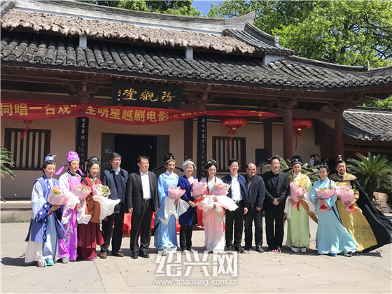 昨天上午,吴凤花、李敏、谢群英、张小君、徐铭、吴素英、王杭娟、郑曼莉八朵戏曲“梅花”齐聚沈园务观堂,在这所千古名园里,为越剧戏曲电影《钗头凤》举行开机仪式。