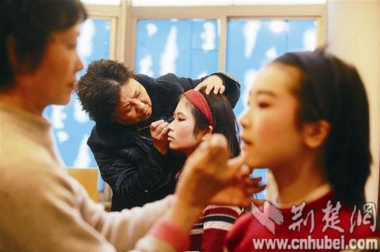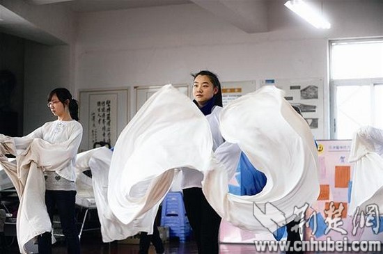 楚天都市报讯(图/记者萧颢 文/记者陈博雷 通讯员周前进 实习生蒋红翠)唱则飞泉鸣玉,念则娓娓动听,做则婀娜多姿,打则英姿飒爽……在华中科技大学同济医学院的校园里,活跃着一群大学生越剧爱好者,她们有30多人,几乎全是学医的女生。社长孙敬雯大三时因选修周琳老师的《中国戏曲欣赏》的课而结缘越剧队,如今,她是研二学生。“我一般演生角。你看,这是我的‘第三任夫人’。”孙敬雯指着一同排练的大三女孩胡博笑称。原来,社里排演的越剧《光绪皇帝的梦想》中,孙敬雯演光绪,胡博则演珍妃,前不久,该剧还在第三届武汉地区高校大学生戏剧节上获奖。周琳老师告诉记者,越剧队至今走过了11个年头,从无到有,从有到优。队员们都是从选修课上选出的好苗子,这些来自五湖四海的同学们之前都从未接触过戏曲,她们从零开始,反复听、反复练。虽然医学生课业繁重,但他们坚持白天上课,晚上下自习后进行手、眼、身、法、步等基本功的训练。如今,越剧队已是硕果累累。上海越剧院把首个"校园越剧文化基地"设在该队,而她们在全国、省市各级戏曲大赛中也多次获奖,队员们还曾多次与"越剧王子"赵志刚等名家同台演出。