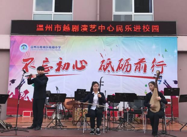 此次进校园活动,温越不仅仅为在场的1000多位师生和家长们带去了精彩的越剧唱段表演,更有令人耳目一新的民族器乐演奏。短短的1个小时,温州市越剧演艺中心的青年演奏员们与瓯越小学“追梦乐团”的孩子们表演了《花仙子》、《聪明的一休》、《赛马》、《彩云追月》等十多首全新编配的民族器乐曲。其中还包括了温州山歌《叮叮当》、以泰顺茶区劳动为背景创作的《采茶舞曲》等富有我们温州地方特色的重奏、合奏器乐曲;还有如《山村来了售货员》、《春到沂河》、《扬鞭催马运粮忙》、《我的祖国》等耳熟能详的经典民乐曲。整场演出欢乐不断,深受同学和家长们的喜爱。