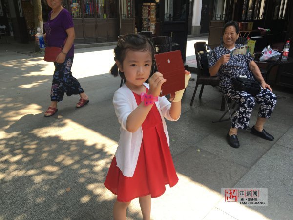 观众乘凉看戏,演员却在太阳下唱戏。戏台上,演员演得汗流浃背;戏台下,观众看得连连鼓掌。本以为这样的天气,不会有什么人看戏,现场一数,有近30名戏迷围在舞台边上,笑眯眯地听着。家住丁桥的赵爷爷今年已80岁高龄,来黄龙洞看戏有六七年的时光。每天早晨7时,他背上茶水和糕点从家里出发,转两趟公交车,花一个多小时来黄龙洞看戏。“这里每天都有戏看,我听得很过瘾!”73岁的戏迷史奶奶更是剧团的“忠实粉丝”,寒冬酷暑,天天来这里报到。“噶热的天还在坚持唱,我们戏迷听得很感动的。”史奶奶说,为了让更多人看上戏,黄龙越剧团对70岁以上的老人以及残疾人免票,真正让百姓得实惠。