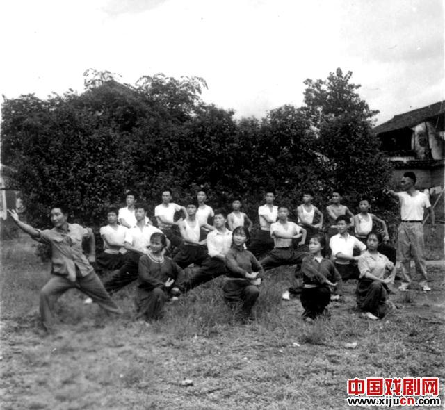 1962年,京剧表演艺术大师盖叫天为“小东风”学员示范表演。