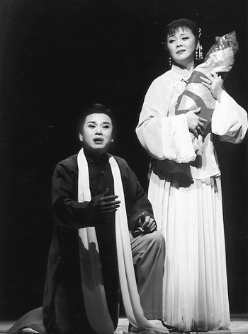 ▲图为越剧《蝶海情僧》吴兆芬的作品充分展现越剧的抒情性与诗意,注重戏味和戏理,富有人情味儿,戏韵悠长。王文娟赞其:“还是她写的唱词有越剧味儿,好唱好记又有文学性。”她还曾任剧院创作室主任、红楼剧团副团长。1990年,由她整理的《范瑞娟表演艺术》一书由上海文艺出版社出版,成为重要的范派艺术理论研究著作。