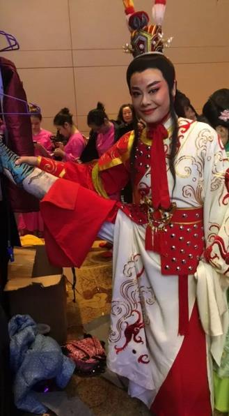 我们都知道,专业越剧演员都是练过幼功的,最迟也在青春期前后开始接受严格正规的形体训练了。戏曲讲究四功五法,即唱念作打和手眼身法步。毯子功、把子功、扇子功、手绢功、髯口功、帽翅功、甩发功、水袖功、翎子功、腰腿功,其中腰腿功是戏曲演员主要基本功之一,也是练习翻筋斗的必修课程。没有成熟老道的腰腿功就无法灵活自如地掌握身体重心的转移腾跃。腰腿功夫还能使演员的身段动作优美协调,像鹞子翻身、涮腰、飞脚、旋子、探海、铁门槛、朝天蹬都属于腰腿功。