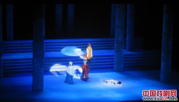 陈琳将太子带到冷宫,李娘娘(陈飞扮演)已绝食郭槐端来白粥,太子劝慰李娘娘